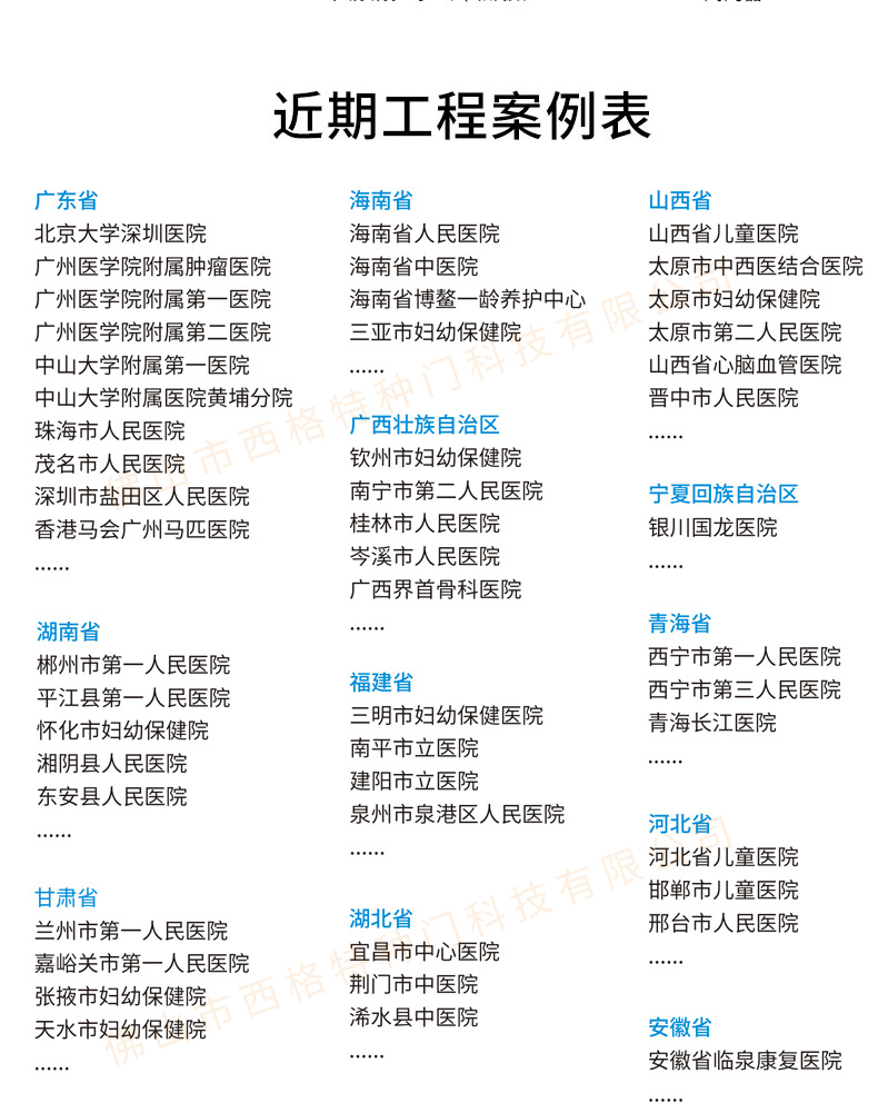 產品簡介:廣東西格醫院門廠家